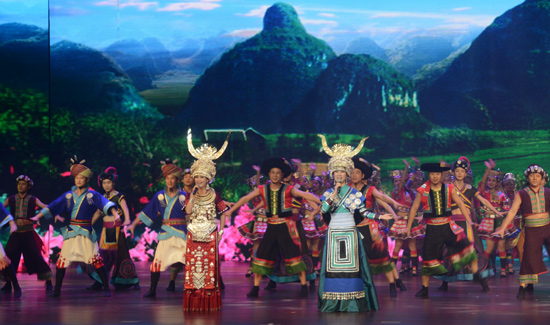 《多彩贵州风》巡演到广州,还带来了景点门票优惠 开场节目《多彩贵州》 在互动环节“试苗装”中,主持人给了这样的一个任务:“五秒内穿上苗服的选手们,请你们把双手举起来。”台上五位观众刚刚照着主持人的话做出动作,下面观众却笑倒一片,原来,这是苗族怀孕女子穿的彩裤,需要把裤圈打个结再塞到里面,台上参与者一举手,有两位的裤子一齐松垮垮地滑了下来。小插曲既是演出中最令人捧腹的桥段,也让观众对少数民族服装有了一个形象的认识。 “一夜多彩贵州风,演绎贵州六百年”。本次演出中,观众既看到了《水姑娘》、《多情贵州》这样极具美感的曼妙舞蹈,也见识到苗族勇士光脚上刀山的惊险表演。侗族会以叶片吹奏小曲,水族会跳起斗牛舞,而仡佬族则有“打”新郎的习俗等等,少数民族的浪漫让观众赞叹不已。 这场演出用人气爆棚来形容一点都不为过,演员们演得赞,观众们看得嗨。 现场人气爆棚 演绎贵州六百年的史诗级歌舞 为了感恩回馈杭州、宁波、上海、苏州、青岛、大连、广州、深圳8个城市对贵州的对口帮扶,近期,贵州省推出2017“贵有真情•感恩有你”贵州感恩回馈对口帮扶城市暨《多彩贵州风》巡演推介活动,在各地展开巡回演出和旅游推介。压轴站广州的演出于3月4日在广东演艺中心大剧院举行。 伴着欢快的音乐,舞台上身着盛装的苗族姑娘跳起了踩鼓舞,银饰闪烁着炫目的光芒,衣服颜色变幻如烂漫的山花,赢得台下一片赞叹和欢呼…… |