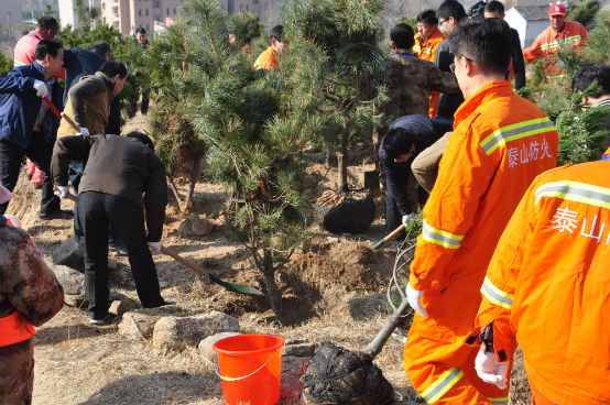 据了解,60多年前泰山大部分还都是荒山,绿化对于泰山来说意义非常重大,泰安市良好的空气质量就得益于泰山绿色覆盖面积。所以,不管多少年来,植树对景区来说意义重大。樱桃园管理区副区长徐力介绍说,种植这两种树种需要穴取好,栽种结实,并且浇透。油松和华山松能够涵养水源,改善空气质量,而这两种都是当地树种,适应气候环境,病虫害少,容易成活。 今天的活动对我们来说意义重大,因为泰山上的植被绿化和景区的保护都依赖于树种的保护和维护,树种本身每年都有自然的淘汰,或其他原因而减少,所以植树对于维护植被平衡的意义重大,泰山(植被绿化)不仅是一个旅游风景区的作用,对现在空气污染状态也有很好的改善。”工会副主席高燕在植树过程中告诉记者。