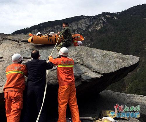 4月3日13时35分,九江庐山锦绣谷景区发生惊魂一幕,一名上饶游客强行攀越好运石景点正下方的黄云万里平台处时,不慎失足坠入6米多深的悬崖,所幸的是,九江市庐山消防官兵及时赶到,经过两小时努力,成功将其救起。 |