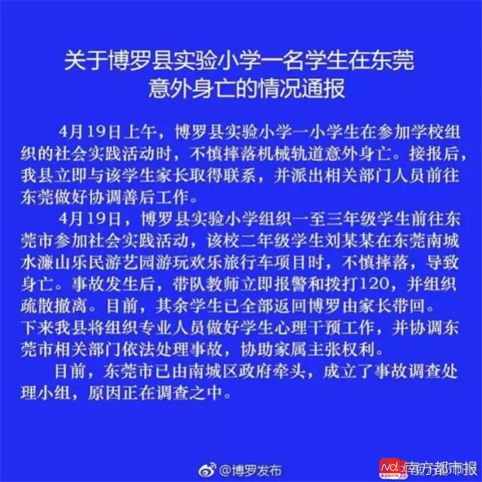 据公司负责人翁女士说,他们公司已经成立了七八年,一直从事教育旅游业务,资质是绝对没有问题。“之前已经服务了很多所学校的实践活动。”据翁女士说,当时分派到二(三)班的是一名蔡姓女导游以及另外一名女导游。“其中一名导游是在排队队伍的最后,负责看守孩子们的书包行李之类,另一名导游则原本是站在出入口,但不巧的是,队伍中间有几个孩子在调皮捣蛋,排在前头的导游就去到队伍中间规劝学生,结果队伍前面的学生就发生了意外,突破了栏杆,并且挤进了轨道里。” 南城水濂山乐民游艺园: 仅1名员工在该项目现场 负责人李先生说,他们在此创办游艺园已7年,年年评为社区安全生产单位,从未出过事。各种游乐设施都是天天日检,每年也都会到安监以及质检等部门申请年检。李先生解释说,他们有员工60多个,拥有二三十个游乐项目,通常每个项目都是配备2名工作人员。“我们平均一天都可以接待上千人,所以接待七八百人,不成问题。”李先生说,最主要的问题是,学生们到达游艺园时,已经接近中午,当时有的员工还在吃饭,所以欢乐旅行车项目的现场只有1名员工在。 【政府通报】 成立多个小组彻查原因 4月19日上午11时30分左右,南城街道水濂社区乐民游艺园发生一起事故,造成一人死亡。南城街道对此高度重视,迅速组成由街道主要领导任组长,街道公安、安监、质监、教育为成员单位的事件调查处理小组,会同市安监局、市质监局立即开展调查处理。 经调查,惠州市博罗县某小学委托惠州市某旅行社组织社会实践活动,于4月19日组织学生到乐民游艺园游玩。当天上午11时30分许,在过山车未停稳时,站在队伍最前面的一名学生意外摔落轨道,被车碾过,当场死亡。经公安刑侦技术人员、法医开展现场调查和勘验,初步排除他杀,目前事故原因正在进一步调查中。调查处理小组针对事件的调查处置成立了多个功能小组,并要求各单位迅速行动,彻底查清原因,全力做好事件善后工作;责令游艺园停业整顿,排查隐患,全力配合做好事件善后工作。 采写:南都记者 何永华、郭秋成 编辑 黄亚岚 本文版权归南方都市报社所有,且为未见报内容。欢迎转发分享给朋友。未经许可,禁止转载。如需获得转载授权,请点击购买授权 |
