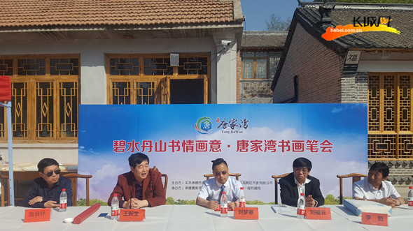 著名书法家隋海成,承德市著名书画家张英敏、叶海慧、李哲、梁海成、梁怀福、陈志杰、刘铁兵、彭淑芳、王华、李福生等参加笔会。 据了解,唐家湾位于承德县仓子乡境内,距承德市区35公里,与朝阳洞、天桥山一山之隔,相距10公里。该景区以4万平方米的人工湖泊及众多的天然溶洞为核心。这里具有长达100多米的天然溶洞——叮当洞,洞内遍布钟乳石,形态各异。景区内还有天门山、骆驼峰、龙虎石、松鼠山、石佛山、玉兔峰、点将台、会仙桥等30多处奇峰异石。将军冠峰,是唐家湾的主峰,高1100米,呈宝塔状,由几层巨岩叠压构造而成,那巨岩壁俏陡立,险不可攀,沿着两侧狭窄曲折,隐约可辨的细小石径,可盘绕而上,直到山顶。 据悉,本次书画笔会,意在借助书画艺术家之笔,为唐家湾旅游景区注入文化和人文内涵,提升景区文化品位,促进旅游与文化的融合。 唐家湾书画笔会活动现场。长城网赵新颖摄