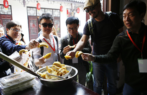 官亭生态园:距紫蓬山约1小时车程。岭上花园,花是这里的主角,春有樱花海棠玉兰桃花,夏有紫薇,秋有金桂,冬有腊梅。6万亩生态园,5万亩碧根果园,4000亩花千谷,绿海林波,阵势浩大,足以让你惊叹到说不出话来。 铭传乡、小团山:距官亭12分钟车程。刘铭传故居与小团山香草农庄一箭之遥,却是不同文化的两两相照,古圩堡里可看一代名将传奇人生,香草农庄里薰衣草郁金香开得如梦如幻。 山南镇:距铭传乡约30分钟车程。山南与官亭,一在大潜山南,一在大潜山北,沿途依湖依山而行,置身于最美乡村画卷。在山南,可重温当年小井庄包产到户的燃情岁月,感受这片土地敢为天下先的豪迈气概,再赴幽林深处的金三和生态农庄,品尝真正纯天然的地道美食。 柿树岗乡:距山南镇仅10分钟车程。小小柿树岗,是不动声色的历史文化重地,除了淮军名将唐定奎故居等圩堡群,此地还遍布商周战国时期的数十处古遗址,拥有好看叫绝的“非遗项目”莲湘舞。 木兰渔村、严店渔村:距柿树岗乡约1小时车程。车行最美乡村公路——杨桃路,带你奔向巢湖,去感受水天一色的壮观,肥西美景到了这里变得波澜壮阔,荡气回肠。木兰渔村、严店乡美食村在巢湖畔,到了这里可赏大湖之美,品湖鲜之味,举杯一醉,千古风流。 水乡三河:距木兰约20分钟车程。走了这么久,只为来此圆梦,粉墙矗矗,小桥流水,桨声灯影,三河是个可以托付身心的地方。在河边的客栈睡一晚,不思归。 三河之夜 嘉宾们品尝三河米饺 |