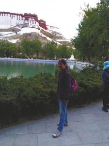 布达拉宫前留影。 2005年,58岁的陈中一和53岁的杨琼历时42天,骑行3000多公里,游历了四川、重庆、湖北、陕西、甘肃五省市后,相约着要一起骑到拉萨去。