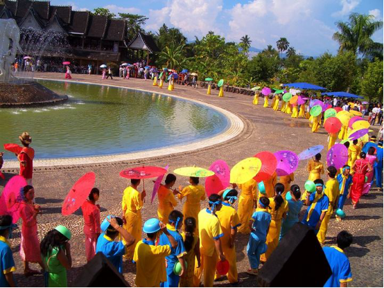 当夜幕降临,宁静的御花园就成了歌舞的海洋,一踏进公园就可以看到一个个满面笑容,身段妖娆的"少哆哩"在跳着傣家团结舞欢迎您的到来。