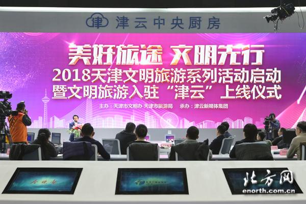 天津北方网讯:2月1日,由天津市文明办、天津市旅游局共同主办,津云新媒体集团承办的“美好旅途 文明先行”2018天津文明旅游系列活动暨文明旅游入驻“津云”上线仪式在津云中央厨房正式启动。天津市各区文明办负责人、各区旅游局负责人、各大旅行社代表以及志愿者代表共计近百人参与本次活动。