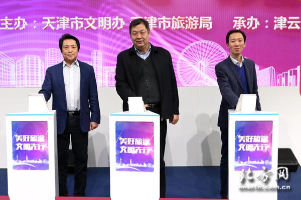 “美好旅途 文明先行”2018天津文明旅游系列活动正式启动 启动仪式上,天津市文明办副巡视员李林河、天津市旅游局副局长尹大勇共同按下启动键,开启了“美好旅途 文明先行”2018天津文明旅游系列活动,同时见证了文明旅游正式入驻“津云”平台。