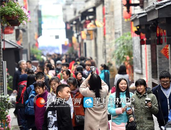 阳朔旅游部门的负责人昨天介绍,黄金周前四天,阳朔县共接待游客约26.6万人次,略超往年。目前全县旅游市场运行平稳,无较大旅游投诉。为了进一步满足游客需要,《印象·刘三姐》于初三开始恢复演出,当晚即演出四场,接待人数达1.44万人次。 19日下午,市民和游客正在参观正阳东巷。记者滕嘉 摄下午3时许,记者在通往县城的国道上看到,挂有粤、鄂、浙、湘、陕等地车牌的私家车不断驶入驶出。据了解,为了缓解停车难问题,阳朔县还开放了临街的机关单位、学校的庭院作为临时停车点,一些村民更是把自己房前屋后的硬田、晒谷场等腾出来,作为临时停车场。 华灯初上,人流穿梭——— 这是18日傍晚记者在正阳东巷里看到的一幕。春节期间,正阳东巷历史文化街区成为桂林市区一个热门的旅游观景地。 春节期间新开通的桂林新环城水系旅游航线,成为游客追捧的热门旅游项目,乘船游览两江四湖新环城水系的市民和游客络绎不绝。游客们一路泛舟,两岸景色纷至沓来,湖面波光粼粼,湖上影影绰绰,舟行碧波上,人在画中游。面对如画的风景,游客们流连忘返,情不自禁地在船上唱起了山歌。 正阳东巷的火爆一直延续到了正阳街。青石板、小骑楼,有着“桂林市区的西街”之称的正阳街,一直是来桂林游客的必到之处。为了迎接新年,街道上悬挂着红旗灯笼,节日氛围浓厚,街道上摩肩接踵,游客们在边走边看的过程中了解了桂林市井文化、人文情怀。 文化景点受追捧