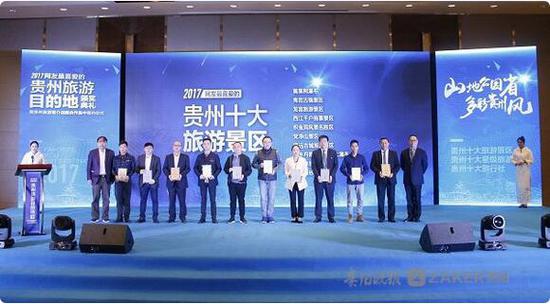 3 月 29 日,2017 年度网友最喜爱的贵州旅游目的地颁奖典礼暨贵州旅游推介战略合作集中签约仪式在贵阳举行。黄果树瀑布等 30 家旅游企业荣获 “ 网友最喜爱的旅游景区、星级旅游饭店、旅行社 ” 殊荣。 网友最喜爱的贵州旅游目的地评选活动自 2017 年 9 月 1 日正式启动以来,通过媒体广泛宣传、张贴旅游服务之星海报、推送独立投票二维码、开设网友有奖互动投票等方式,吸引 4860 余万人次网友通过多彩贵州网、蚂蜂窝旅行网投票平台对 179 家星级景区、263 家旅游酒店、286 家旅行社进行投票。活动组委会办公室根据评选条件对入围景区、酒店、旅行社进行初审、测评后,于 2017 年 11 月 30 日将 60 家入围企业提交评审专家审核。经专家评审,最终确定了 2017 年度网友最喜爱的贵州十大旅游景区、十大星级旅游饭店、十大旅行社。 活动现场,与会嘉宾共同为获奖单位颁发证书,30 余家参会景区就贵州旅游推介战略合作事宜进行集中签约。主办单位还公布了参与投票的幸运网友名单,其中,10 名幸运网友将获得十大旅游景区免费门票各 2 张、星级旅游饭店豪华单间住宿体验券 1 晚;20 名幸运网友将受邀参加 “2017 年度网友最喜爱的贵州旅游目的地 ” 评选活动旅游团。 本次活动由贵州省委宣传部、贵州省旅游发展委员会、贵州省互联网信息办公室指导,贵州旅游协会、贵州省互联网发展协会、多彩贵州网、马蜂窝旅行网、微景天下网共同主办。 2017 年度网友最喜爱的贵州十大旅游景区—— 黄果树瀑布 青岩古镇景区 龙宫旅游景区 西江千户苗寨景区 织金洞风景名胜区 梵净山景区 镇远古城旅游景区 赤水丹霞旅游区大瀑布 万峰林景区 铜仁朱砂古镇 贵阳晚报全媒体记者 陈问菩