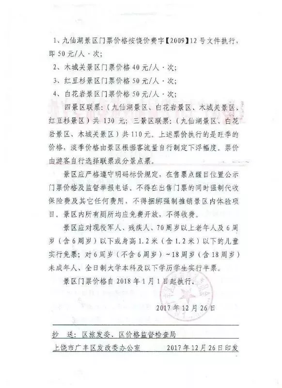 重磅:在3月16日至25日大门票试运营。在这期间游玩铜钹山九仙湖、白花岩、木城关、红豆杉四景点,购大门票有优惠,只要50元。