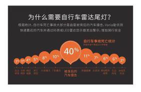 自行车雷达尾灯Varia RTL510能侦测快速靠近的汽车并通过码表或LED雷达显示器发出警示,增加骑行安全 新款Varia RTL510提升了自身的可见性和对后方车辆的感测灵敏度,延长了续航时间(闪烁模式15小时;常亮模式6小时),帮助车友进行更安全的骑行。当后方有车辆靠近时,车友可以通过Edge码表获得画面及声音提示,测量距离可达140米。即使在白天,1英里(1.61公里)、220°范围内也清晰可见,时刻提醒后方及周围车辆。