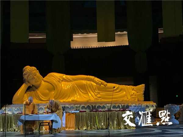 交汇点讯 30日上午,南京牛首山文化旅游区佛顶宫,佛顶寺住持曙光大师挥毫泼墨,将“不忘初心”四个大字送给现场游客。扬州著名书法家、中国篆书名家杨建成,将一副长6米高2.5米长的用大篆和小篆书写的《金刚经》现场捐赠给佛顶寺……