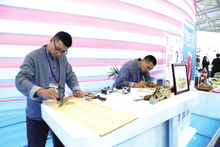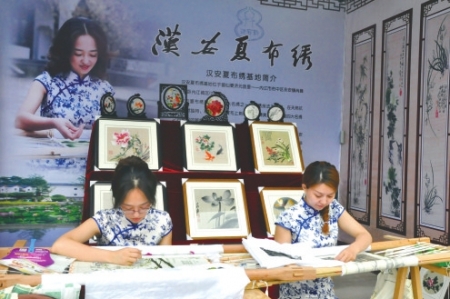四川首届川南电商博览会上,汉安夏布绣现场展示。
