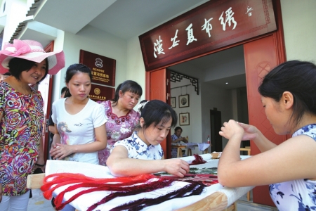 “汉安夏布绣”,因其罕见多元文化融合的特性,被业内誉为崛起中的“中国第五大名绣。” 据了解,市中区妇联最初推动刺绣,意在吸引农村妇女回乡打工以照顾家人,但在“蜀绣之乡”成都安靖镇考察后,大家觉得蜀绣技法可学,但不能“亦步亦趋”,无特色则无竞争力。“汉安文化”、“书画之乡”、“夏布书画”、“书画夏布”等多个本土特色文化要素涌现融合,并形成一个全新概念:汉安夏布绣。 可普通夏布难以作绣,时任内江职院教授王少农经过10多年研究后,发明了夏布处理技术,实现了普通夏布向书画夏布的转换,绣娘们也开始在书画夏布上进行刺绣。 “汉安夏布绣”之所以能够被誉为“中国第五大名绣”,自有其独特之处。据了解,夏布全为手工加工,麻线粗细不一,线迹若隐若现肌理自然,呈现出粗犷古朴、大气自然的特性,迎合了当下崇尚自然的潮流,再以细腻的“书画夏布”为绣料,其特质是其他绣品没有的。 而在“汉安夏布绣”的家乡,“汉安夏布绣”也是许多绣娘吃饭的本钱。残障女士饶镜是一位绣娘,她因腿脚不方便,此前找的工作都不满意,看到市中区妇联组织的“绣娘”培训后,觉得特别适合自己,便报名参与。 经历了3个月的学习后,她接了一幅私人订制的《荷花图》,在老师指导下绣了两个月,获得了雇主的肯定。 目前,依托“居家就业”工程及新村建设,已在“画仙故里”晏济元家乡尚腾新村,建立了汉安夏布绣基地;与内江职业技术学院签约,建立“中国夏布文化产业研发示范基地”,合作探索“汉安夏布绣”发展新路。 华西城市读本记者 昔兴琪