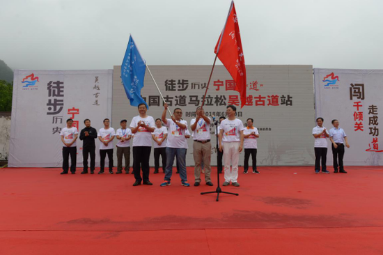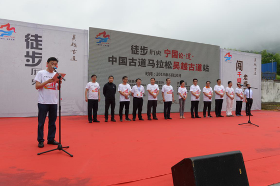 宁国市委常委、宣传部部长金庆文宣布中国古道马拉松吴越古道站启动,市政府副市长江政义出席当天上午的启动仪式并讲话。