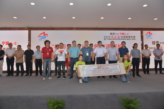 “2018长三角古道旅游大会”6月9日在宁国市举行,来自浙江、江苏、安徽、上海、湖北、江西六省市12市县旅游局委、古道旅游机构、景区代表以及国内古道旅游俱乐部、旅行社、企业家代表、马拉松爱好者、主流媒体等300多人出席大会。