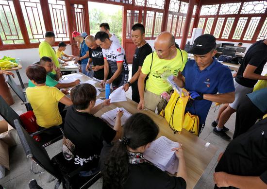 2018环江淮万人骑行大赛利辛站将于7月8号将拉开帷幕。7日下午,在现场看到,参赛选手陆续前来领取赛事包、芯片等参赛用品。我们访谈几位选手,了解了他们与自行车的故事。 现在,李治平是快客车队安徽分队的一名队员,今年的环江淮万人骑行大赛,他目前最好的成绩是旌德站的精英组第三名。 因为骑行,20年后她们重拾友谊 三年前,酷爱自行车运动的李治平决定做一名专业车手。他每天要进行3-5小时的骑行训练,同时进行一些力量训练。每周末,他会到各地参加骑行比赛。李治平说,骑行是他热爱的事业,给他带来了巨大改变,不仅让他成功减肥,也让他更健康、更自信。 精英组参赛选手李治平20岁,是一名专业骑手,他看起来精瘦干练,不熟悉他的人肯定想不到,三年前的他,还是个220斤的“小胖子”。 大师组的陈艺路今年55岁,已经有30年的骑龄。作为淮南领风竞速车队的队长,目前,他高居2018环江淮万人骑行大赛总分榜第二名。 淮南领风竞速车队共有20名队员参加此次利辛站的比赛。
