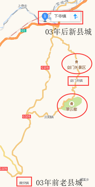 原来是剑阁县的老县城是在普安镇的,于2003年9月县城迁至下寺镇,根据民间的叫法,新县城剑阁县 = 下寺镇 ,老县城则是普安镇,其中高铁剑门关站是在剑阁县,而很多汽车到达的是老县城普安镇。