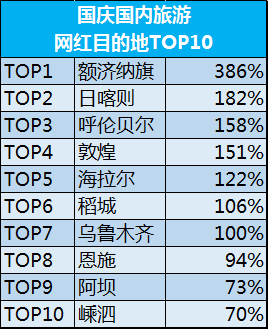 根据度假线路的预订人气,国庆十大“网红”目的地预测也已出炉,包括额济纳旗、日喀则、呼伦贝尔、敦煌、海拉尔、稻城、乌鲁木齐、恩施、阿坝、嵊泗。其中,额济纳旗成为今年国庆出行的黑马,人气同比增长386%。爆红离不开摄影爱好者的推荐,金秋十月正是游览额济纳旗胡杨林的最佳时期,往年不断在网上出现的相关照片将更多人们的目光引向了额济纳旗。此外,近期在抖音上走红的海拉尔、稻城等目的地,今年国庆的到达人数也将增长明显。 从网上搜索预订人气看,还有一些旅游城市将成为今年国庆假期的黑马。相比去年同期,今年十一前往长春旅游的人数较去年预计增长256%,这与今年6月长春开通了前往长白山的直通车不无关系,游客将可以通过长春轻松开启天池之旅。同时,老牌“网红”城市成都、重庆也上榜,网上搜索预订人气超过50%。 面对出行高峰,选择拼假出游也已成为很多游客的共识。因为今年中秋假期和国庆假期相距一周,游客可以通过两种方式来拼出超长假期,来满足高性价比的个性化出行方案。选择在中秋出发,可以休假6天拼成16天假期,避开出游高峰;选择在10月8日-12日请假5天,也能拼成14天的一个长假,还可以选择在10月4号之后错峰游玩,性价比也相当高。 哪些地方的市民更爱旅游?来自携程的国内游产品订单显示,2018年国庆黄金周国内游出发城市前十大城市,分别是上海、北京、成都、重庆、广州、杭州、南京、深圳、天津和武汉。和去年国庆数据进行比较,重庆的上升态势明显,排名已至第四名。 哪些国内目的地城市会是争夺国庆游客的赢家?数据显示,国庆最受跟团游游客欢迎的国内城市前十分别是北京、桂林、昆明、张家界、兰州、三亚、乌鲁木齐、厦门、丽江和贵阳,与之相关的热门线路均出现报名人数激增的现象。 |