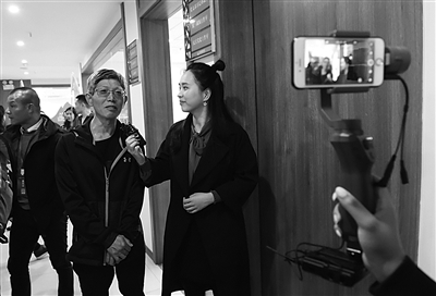 扬眼现场采访参观生态岛的老总们。