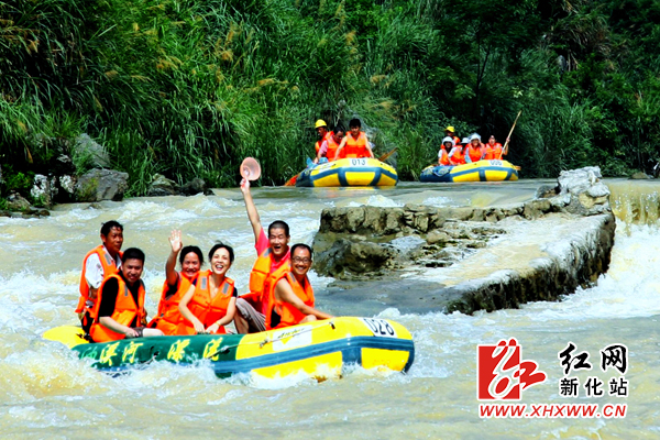 紫鹊界正龙民居 1、紫鹊界。紫鹊界梯田作为江南稻作文化的千古遗存,是国家AAAA旅游景区,国家级风景名胜区,国家自然与文化双遗产,国家水利风景区,首批国家重要农业文化遗产,新潇湘八景景区。紫鹊界位于湖南省新化县水车镇境内,泱泱8万余亩梯田,坡度在25-50度,最陡峭的地方达到50度,层层叠叠于海拔500-1100米之间,而这么大面积的梯田,全由天然灌溉,田间清泉,四季长流不止,山有多高,田就有多,水就有多高!地质学家考证,这是基岩裂隙水的杰作,那么,先人们又是如何发现这“天人合一”的农耕环境,如何将其完美利用,如何将其完好无损保存至今?一个个答案等待着您去寻奇探秘。 梅山龙宫 2、梅山龙宫。梅山龙宫是国家AAAA旅游景区,国家级风景名胜区,国家自然与文化双遗产,新潇湘八景景区,首届湖南大众最爱旅游目的地。位于湖南省新化县资水河畔,距县城28公里,是一个大型溶洞群,有9层洞穴,探明长度2870余米,已开发浏览路线1896米,其中包括长466米世界罕见的神秘地下河。 梅山龙宫整个洞府分为龙宫迎宾、碧水莲宫、玉皇天宫、龙宫仙苑、龙宫风情、龙凤呈祥六大景区。洞内景观丰富多彩,绝世景观举不胜举,水路神秘莫测,可乘船荡舟;旱路曲径通幽,沿途流石景观姿态各异美不胜收;石笋、石钟乳玲珑剔透、栩栩如生。具有其他溶洞所未曾发现的黑白两色“非重力水沉积物”、被专家称为“亚洲最美丽的地质博物园”。开发水平是“湖南第一,国内一流,世界先进”;其中“峡谷云天”、“哪吒出世”、“玉皇天宫”、“水中金山”“远古河床”、被誉为世界溶洞五大惊世奇观,充满着“挡不住的诱惑”。 大熊山国家森林公园 3、大熊山国家森林公园。大熊山距离新化县城62公里,总面积8100公顷,森林覆盖率达93%。主峰九龙池海拔1622米,是湘中第一高峰;园内有三万亩原始次森林。有云豹、红豆杉等30多种国家级保护动植物,有中华银杏王、熊山古寺、川岩江、桐子冲瀑布,山、水、林、寺相得益彰,是一幅天然的“声、光、影、色”俱佳的立体画卷。 大熊山是与黄帝、炎帝逐鹿中原的蚩尤的世居之地,被称为“苗瑶祖山”,《史记》中黄帝“登熊湘”处便是这里。乾隆南下巡游曾来到大熊山,并留下“十里屏开独标清胜、熊峰鼎峙半吐精华”的墨宝。曾有49座寺庙密布山中,流传着许多神秘的故事…… 油溪河漂流 4、油溪河漂流。油溪河漂流位于新化县吉庆镇油溪桥村,全程12公里,两岸绿树成荫,危崖耸立,怪石嶙峋。流水清澈见底,流速急且盘旋。总落差300多米,沿途穿过28个峡谷,跨越36个潭、48个滩、39回湾。被专家学者誉为“中华生态峡谷第一漂”。漂完全程约2个半小时,惊险!神奇!刺激! 奉家古桃花源 5、奉家桃花源。真正的桃花源在哪儿?走进雪峰山脉中段的新化县奉家山腹地,您曾经坚定不移的判断就会有所动摇。经粟海等专家考证,《桃花源记》所描写的时间地点人物和事件与新化县奉家镇的下团村的自然特征、人文历史和家谱记录貌合神符。这里曾是瑶人聚居的地方,大多数姓奉,世代相传的族谱证实他们是秦献公之子、秦孝公之弟——季昌的后裔,位于下团村的奉氏宗祠里供奉着这两位始祖的圣像。居住在这里的瑶人,在宋、明王朝的逼迫之下转为汉族,但现在依然中保留了许多传统的瑶族文化特质。村民好客,民风淳朴,依然保留着“夜不闭户,路不拾遗”的良好风尚。简直就像陶渊明亲临现场进行照相式的描述。 6、西河粗石零峡。粗石村是新化西河镇的一个小山村,坐落在海拔1600多米的深山密林中。山势陡峭险峻,植被葱郁,水源丰富。溪流落差平均都在10-20米左右,瀑布众多,非常壮观。