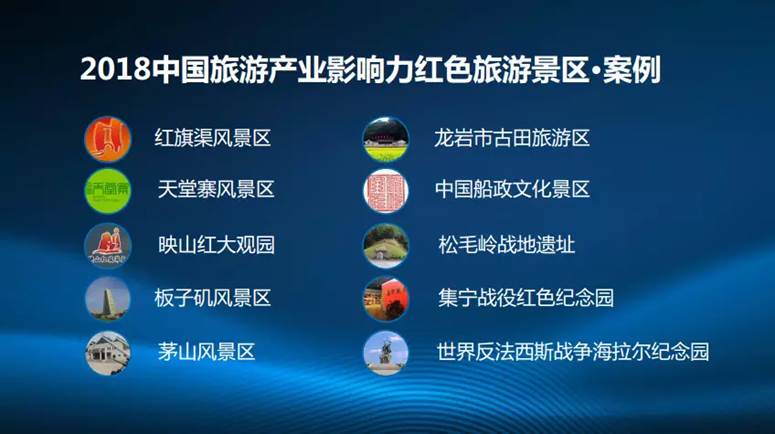 2018年11月30日至12月1日,由文化和旅游部、福建省人民政府主办的第四届“海上丝绸之路”(福州)国际旅游节在福州市隆重举行。 该项调查覆盖全国所有省(市、区)及 100个旅游城市,调查案例包括 1600 家以上景区、旅游目的地以及近千家旅游、文化企业,参与调查的访问对象总计超过 500 万人次。本着公平、公正、公开、专业的原则,在全国范围内通过案例征集、大数据监测、网络互动传播、口碑数据分析、专业研究等方式,最终产生“2018中国旅游产业影响力调查指数”案例名单,其中“2018中国旅游产业影响力旅红色旅游景区”上榜景区仅有10家,分别为:红旗渠风景区、天堂寨风景区、映山红大观园、板子矶景区、茅山风景区、龙岩市古田旅游区、中国船政文化景区、松毛岭战地遗址、集宁战役红色纪念园世界反法西斯战争海拉尔纪念园。