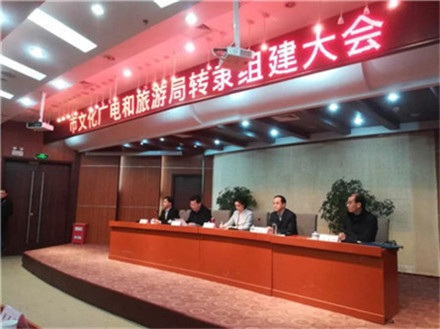 1月20日下午,新组建的连云港市文化广电和旅游局举行挂牌仪式,专隶组建大会同时召开。市委常委、宣传部部长滕雯,副市长黄远征出席活动。 会议提出,要严格按照市委明确的路线图、时间表,要有更高的整治站位,充分认识机构改革的重大意义,以实际行动拥护改革、支持改革,共同推动全市文化广电和旅游工作持续健康发展;要有更实的行动举措,科学谋划,严密组织,协调推进各项工作做细、做实;合力。改革前有关部门负责的日常监管、专项整治等工作,要随同职责划转继续抓好,绝不能出现职责划转、机构转隶、人员换岗任务落空的现象,找准工作重心,牢牢把握文化与旅游大融合的背景,以文化充实旅游内涵、提升旅游宣传、推动旅游发展,以旅游带动文化产业、促进文化交流、推动文化繁荣。 根据省委、省政府批复同意的《连云港市机构改革方案》,决定将将市文化广电新闻出版局(市版权局)的新闻出版、电影管理等职责划入市委宣传部。 要尽快融合,形成合力。改革前有关部门负责的日常监管、专项整治等工作,要随同职责划转继续抓好,绝不能出现职责划转、机构转隶、人员换岗任务落空的现象,找准工作重心,牢牢把握文化与旅游大融合的背景,以文化充实旅游内涵、提升旅游宣传、推动旅游发展,以旅游带动文化产业、促进文化交流、推动文化繁荣。