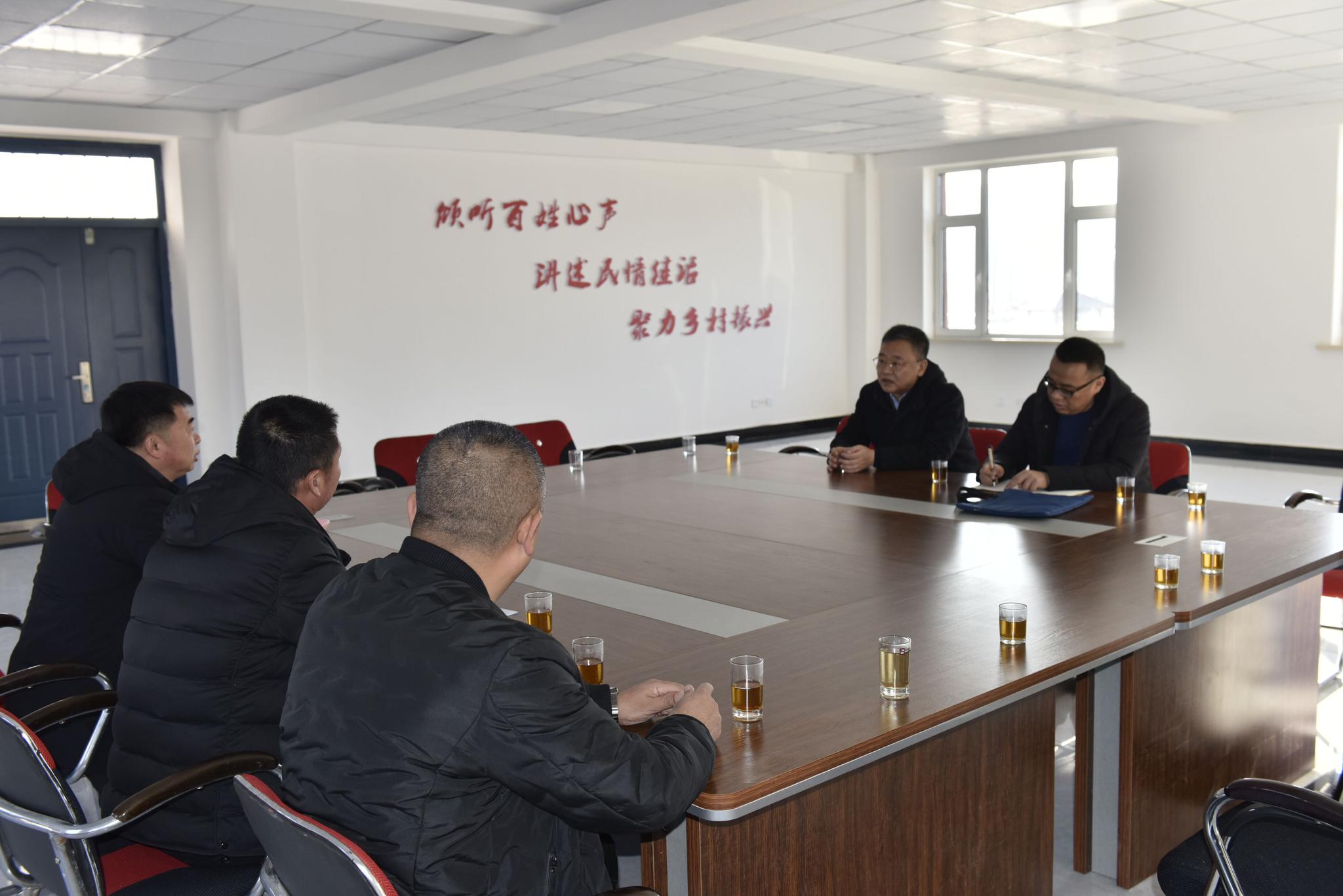 曲笑局长一行在土们岭街道领导的陪同下来到马鞍山村新村部,对新村部建设情况进行了调研。随后,走访组与土们岭街道、马鞍山村委及驻村工作队员进行了座谈,听取了土们岭街道关于2018年脱贫攻坚工作开展情况及2019年脱贫攻坚工作安排的汇报。