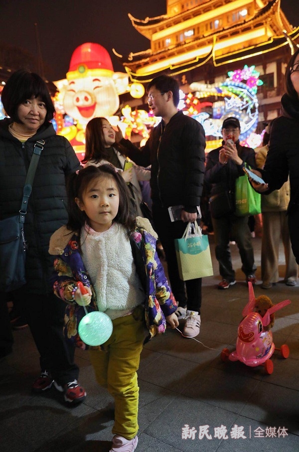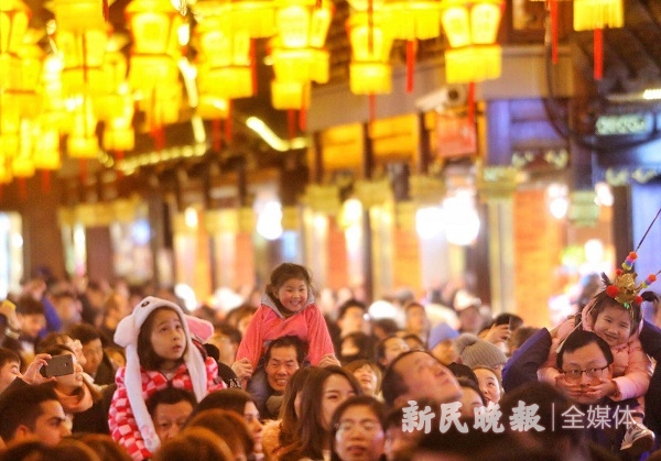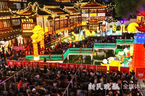 新民晚报讯(记者 杨玉红)昨日是元宵节,晚间18时开始,豫园灯会迎来大批客流,“情人谷”等创意灯组格外受年轻人欢迎。 图说:女孩一手一个灯 豫园新春民俗艺术灯会已经迎来第24届,今年,特地从上海城隍庙“请”来了门神,在进入豫园商城的道口显得格外威武喜庆;今年九曲桥桥身和湖心亭以LED染色灯进行了亮化升级,妆点上了“新春的色彩”。 图说:论“鹤立鸡群”的幸福感