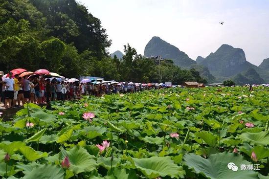 近日,朦胧细雨笼罩着整个柳江大地,沉寂了整个秋冬的万亩荷塘,正在为新一年的怒放积蓄着力量。下伦荷花景区规划设计团队冒雨深入景区田间山头进行实地考察,为推进景区提档升级建设、提升景区品质做前期调研。 据了解,2019年,柳江区将加快推进百朋荷苑游客中心建设,设置售票服务大厅、餐厅、农事展区、特产品超市等多种服务功能。百朋下伦荷花景区种植观赏莲的面积,在保留及养护好去年300亩的基础上,再增加种植200亩;建设下伦上山健身步道、下伦山体景观及荷田景观照明、下伦楼台山山顶玻璃观景平台、悬崖客栈、荷田移动船宿;建设“百朋下伦现代农业核心示范区大门”外的生态停车场。百朋荷苑游客中心建设及整个下伦荷花景区均要按照国家4A景区标准建设,争取今年年底前通过创4A景区的验收,全力推动柳江旅游业提质增效。 撩人心弦的娇媚荷花,不仅“长”在文人骚客的笔下,也在我们“中国玉藕之乡”的万亩荷塘中。每年盛夏,柳江区百朋镇各色荷花竞相绽放,伴着骄阳,沐着清风,八方游客慕名而来。 编辑:梁彩鸾 审核:刘 斌 ——《咏莲》宋·杜衍 [来源微柳江 转载请注明出处] 池塘一夜风雨,开起万朵红玉。 去年第七届柳江荷花文化旅游节开幕,百朋下伦荷花景区人头攒动,央视和广西电视台、中国新闻网、柳州电视台等几十家媒体纷至沓来,让柳江荷花在全国人民面前着实火了一把,朋友圈更是刷屏的节奏。