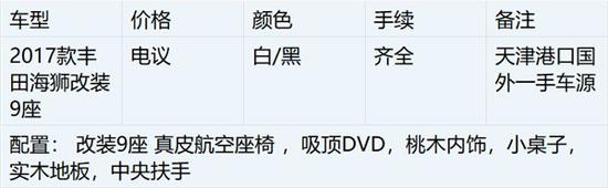 平行进口丰田海狮现车到店,改装9座真皮航空座椅,出游畅行舒适尽享,性能动力配置丰富,优惠袭来津门爆卖。丰田海狮作为一款豪华的商务面包车,集商务接待以及移动房车为一体,在现在的商务接待以及政府接待的市场上都深受欢迎,丰田海狮改装商务车也改装的神奇技能成为商务用车的佼佼者。 丰田海狮改装商务车为了提供给我们舒适的乘车环境,车内采用最舒适的音响设备和,丰田海狮改装商务车为我们在旅行中提供了优质音乐和旋律的需要,再加上车内增加了隔音设备,对回声的处理,丰田海狮改装商务车,更是为我们提供了最舒适的环境,宽敞的空间优雅的内饰,动听的音乐,这一切都是丰田海狮改装商务车的独特之处。 丰田海狮商务车搭载了2.7L-四缸-VVTI汽油发动机,动力参数也是相当好看。变速箱方面,丰田海狮商务车匹配的是来丰田的Punch 的无极变速箱。当然了这款发动机的动力也是十分强劲的,它的最大功率是:113/4800(kw/rpm),最大扭矩是:241/3800(nm/rpm),还能够在特殊的地形条件下输出强大的动力。 丰田海狮改装可以选择的座椅有360可旋转的航空首长席座椅,再配备高档的办公桌,方便我们在旅途中的会议以及商务活动的需要。丰田海狮改装同样也可以选择,原装进口的埃尔法豪华座椅,并且再配备电动加热通风以及电动脚托的装置,丰田海狮改装商车在内饰座椅上的选择上充分体现了对于乘车人员舒适度的考虑。 丰田海狮是丰田汽车第一款前置驾驶室车型,它的名字由“Hi(high)”—高性能和“Ace”—王牌组成。这款高端商旅车具有流线型高身车顶及正方大气的车头设计,流畅而富有安全感;强健而宽大的车身,可为驾乘者提供舒适的旅程。 丰田海狮各项性能及配备均已全面升级,舒适性、安全性等都有更高档次的飞跃,让您加倍享受商旅过程的畅快感觉。力臻完美的全新HIACE以出众品质。丰田海狮夺得日本Good Design Award 2004(2004年优秀设计奖),当然是霸气十足,无愧为引领未来的新一代名车风范! 备注: 原装进口,海外直购,仓储直提,质量保证,售后无忧。 全国多家大型银行已签订合作,专业办理全国按揭分期0~30~50~70%首付。 资质门槛低,审批流程快,利率遵循央行规定,全国各省市均可代办上牌落户。 ————————————————————————————————————— 公司名称:天津永驰兴业汽车贸易有限公司 联系电话:13332061881 刘刚(销售经理) 微信号码:13332061881 (同手机号) 公司地址:天津市滨海新区保税区海滨五路。(购车前请致电资询购车详情,外地客户火车站,机场均可安排工作车接送。一次合作,终生为友!) 客户的满意,是我们最大的追求! 免责声明:以上购车优惠信息由新浪网综合经销商提供,由于行情因素价格浮动较大,仅供购车参考;其真实性、准确性及合法性由经销商负责,本网站不提供任何保证,亦不承担任何法律责任。 |