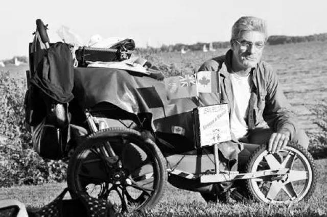 在阿尔尚博鼓励下,贝利沃响应联合国教科文组织号召,为儿童福利宣传和平和非暴力主张,从那时起,原本是为了逃离现实的旅行突然有了目标。在我看来,不管他当初为了什么而出发,当他勇敢踏上旅行,走在路上的时候,他已经是一名英雄了。 45岁生日那天,贝利沃从蒙特利尔启程,带着家人的祝福和4000加元,推着一辆三轮手推车,装着一些食物、行李和急救箱,开始徒步之旅。