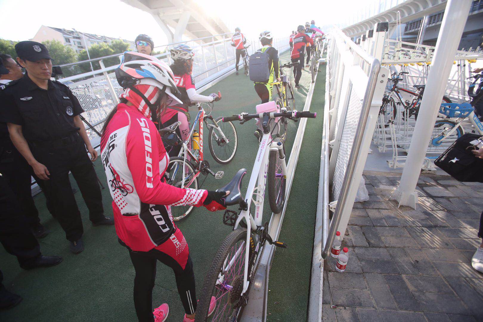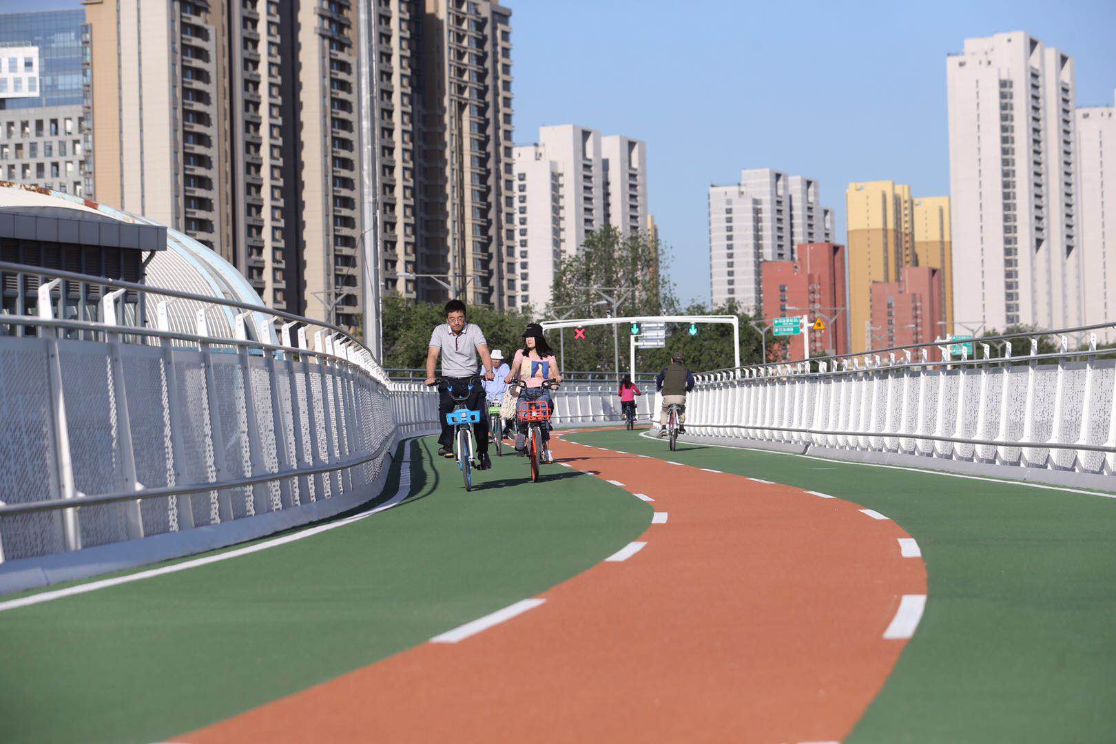 新京报记者王贵彬 摄 6处坡道上的自行车助力系统均已开启,推车上坡非常省力。