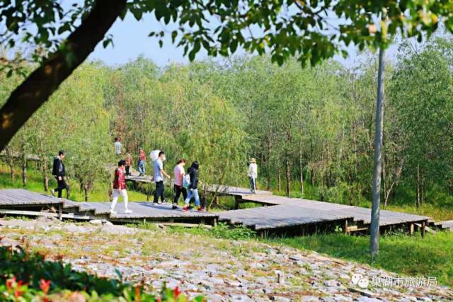 月亮湾湿地公园 李克农故居附近还有一处可饱览湖光山色、远离城市喧嚣的湿地公园——月亮湾湿地公园,该公园位于滨湖旅游观光大道南侧,烔炀河入巢湖河口,是环巢湖“金项链”绿道工程重要节点,从空中往下看整个公园形状就像一个弯弯的月牙。公园依托沿湖天然湿地资源,建设休闲绿道800余米,打造月亮湾驿站、柳荫路曲、巢浪闻莺、鱼跃鸢飞、清水平台,徽语听巢、荷风塘等十多处景点,是市民和游客休闲度假、旅游观光的极佳去处。