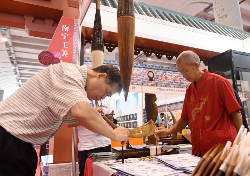 8月31日,在广西南宁国际会展中心,一名老人在缝制壮族布鞋鞋面。 8月30日,为期4天的2019广西工艺美术作品旅游工业品暨大师精品展在广西南宁国际会展中心举行,全区500多家企业、院校、研究所及个人约2万件作品参展。 新华社记者 陆波岸 摄 8月31日,在广西南宁国际会展中心,参观者在体验陶器制作。 8月30日,为期4天的2019广西工艺美术作品旅游工业品暨大师精品展在广西南宁国际会展中心举行,全区500多家企业、院校、研究所及个人约2万件作品参展。 新华社记者 陆波岸 摄 8月31日,在广西南宁国际会展中心,参观者在了解一款民族服饰的制作工艺。 8月30日,为期4天的2019广西工艺美术作品旅游工业品暨大师精品展在广西南宁国际会展中心举行,全区500多家企业、院校、研究所及个人约2万件作品参展。 新华社记者 陆波岸 摄 8月31日,在广西南宁国际会展中心,一名工艺师现场展示影雕技艺。 8月30日,为期4天的2019广西工艺美术作品旅游工业品暨大师精品展在广西南宁国际会展中心举行,全区500多家企业、院校、研究所及个人约2万件作品参展。 新华社记者 陆波岸 摄 8月31日,在广西南宁国际会展中心,参观者(左)用毛笔写字。 8月30日,为期4天的2019广西工艺美术作品旅游工业品暨大师精品展在广西南宁国际会展中心举行,全区500多家企业、院校、研究所及个人约2万件作品参展。 新华社记者 陆波岸 摄 |