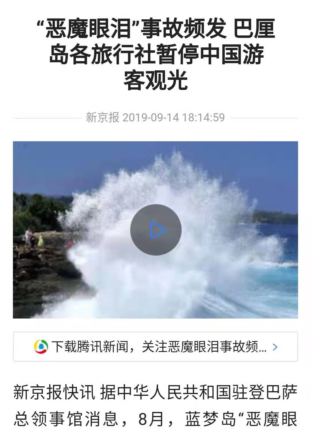 [摘要]最近两天不少新闻媒体报道了巴厘岛各旅行社暂停中国游客观光的新闻 最近两天 不少新闻媒体报道了 巴厘岛各旅行社暂停中国游客观光的新闻 迅速登上了微博热搜。 出了新闻后, 不少网友都表示非常可惜。 究其原因还是安全问题 据中华人民共和国驻登巴萨总领事馆消息,8月,蓝梦岛“恶魔眼泪”发生三名外国游客死亡事件,死者中包括一名中国公民。过去每年均有十多名游客被恶浪夺命,其中不乏中国游客。 9月3日,驻登巴萨总领馆召开旅游安全专项问题协调会,就近期蓝梦岛“恶魔眼泪”频发的伤亡事故研讨解决办法。会议决定,自9月15日起,直至安全措施和设施全部到位,印尼旅游和旅行社协会巴厘省分会下属旅行社暂不安排中国游客前往“恶魔眼泪”,并呼吁“自由行”的中国游客切勿前往。 到底有多危险呢?今年3月份,我们就曾报道过一名中国游客在恶魔的眼泪景点处拍照时,发生的惊险一幕。 所幸女孩随后被安全救上岸。 2018年6月10日下午,一名男子不顾众人劝阻,只身跑到“恶魔的眼泪”悬崖下岩石上观海,瞬间被一个十几米高的巨浪吞噬。 2018年3月份,一个阳光明媚的日子,三名中国游客在巴厘岛的网红悬崖自拍,推测是一家人搂在一起拍的。突然,其中一名男子脚下一滑,三个人一起重心不稳地向后方摔去。 2018年6月10日下午,在恶魔的眼泪(Devil's tears),一名中国籍男子不顾众人劝阻,只身一人跑到悬崖下面一处岩石上观看浪潮,瞬间被一个十几米高的巨浪吞噬卷入海里,当救援人员搜救到时,该男子已毫无生命特征,当场死亡。 2018年9月7日,2名中国游客(30岁和38岁)在恶魔的眼泪(Devil's tears)悬崖处自拍时遭到巨浪袭击卷入大海,所幸被救起时并无大碍,被送往医院治疗。 2019年8月17日,一名38岁的中国女游客在恶魔的眼泪(Devil's tears)游玩时不顾随行导游的警告前往悬崖处拍照,随后一股巨浪袭击了她,之后在送往医院途中身亡。 以上仅是部分数据。 谈到这里,肯定有很多伙伴脑海会浮现几个问题,这地方在哪?为什么会吸引这么多游客去打卡?为什么要叫恶魔之眼? 作为近几年的网红景点,在巴厘岛东南边蓝梦岛上,是去巴厘岛时必去的景点之一。恶魔的眼泪是蓝梦岛最佳观潮地点,也是最美景点之一,虽然地方不大,但是涨潮的时候景色很迷人,涨潮时会有很大的浪墙,浪高估计有二三十米,特别震撼,还能在阳光的折射下看到水雾中的彩虹! 恶魔的眼泪,巴厘岛最美景点之一,被外媒评价为全球最美十大景点之一,海浪不断的冲刷着缺口,日复一日,年复一年。 许许多多的人在这里感受到了大自然的鬼斧神工,拍到了很多震撼人心的照片。 |