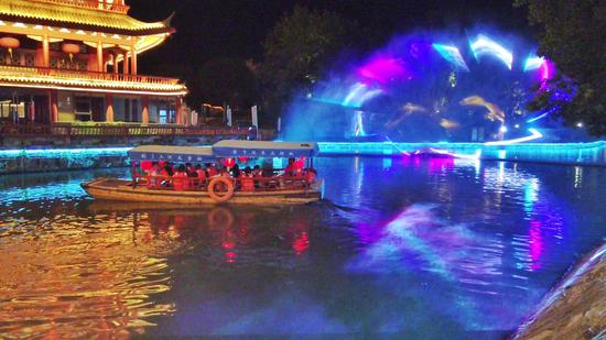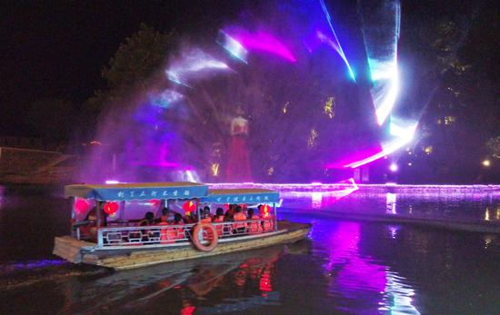 六大游览主题富教于游 灯光辉映下的三河古镇,别具风采。当晚,游客们可以按照步行、乘船两条夜览路线,品味千年古镇的沉稳与灵动。全长约25分钟的乘船夜游路线上,鹊渚廊桥、三县桥、望月桥、望月楼建筑、对越桥、天然桥、仙归桥等古镇水中景致一一映入眼帘,两处水幕电影也将炫丽亮相。