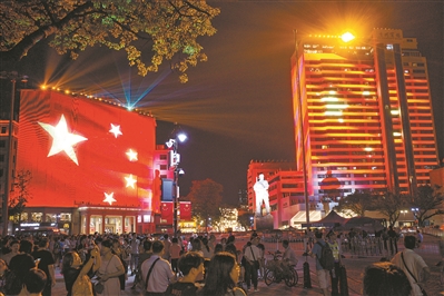 连日来,到海珠广场看灯光的游客及市民络绎不绝。广州日报全媒体记者邱伟荣 实习生罗致凯 摄