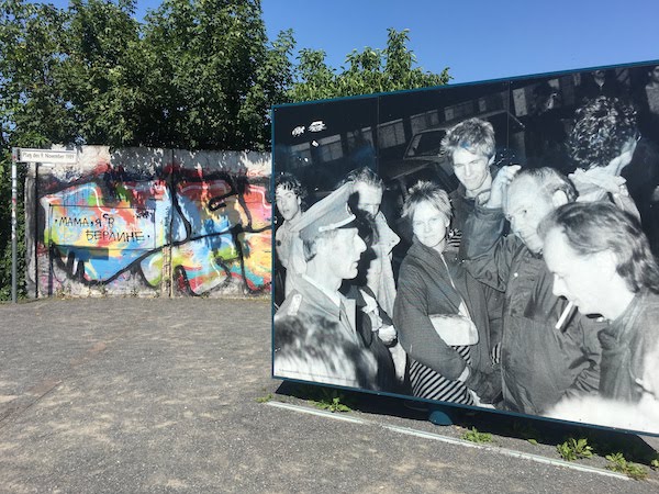 柏林墙纪念馆的照片陈列墙 我们将自行车停在阴凉处,在Mauersegler啤酒屋一边喝着啤酒一边讨论着柏林正不断提高的生活成本、那些新建成的宛如碉堡的公寓建筑、针对街头艺人的种种禁令等。 我们的自行车之旅在柏林墙纪念馆结束。这里还完整保留一段水泥墙,看上去阴森可怕,一侧则陈列着当年那些为了自由而死的人们的照片,令人垂泪。即便是今天,在这里逗留也让人不适。是的,这座墙达到了它的目的:它终结了50年代柏林一触即发的紧张状态。它稳住了欧洲,但也永远地割裂了柏林。据估计,东西柏林之间的基础设施需要花55年时间,才可以完整地连接在一起,所以,还需要整整一代人的努力。
