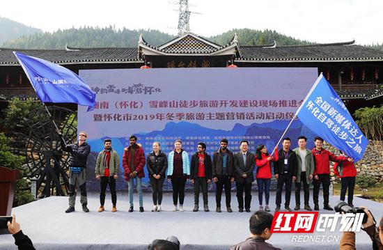 随心而行,自由自驾,肆意徒步……无论在中国,还是世界,徒步旅行正为越来越多人所青睐。湖南雪峰山,正逐渐成为徒步者们追随的“徒步天堂”。 今天上午,湖南(怀化)雪峰山徒步旅游开发建设现场推进会暨怀化市2019年冬季旅游主题营销活动在怀化市溆浦县穿岩山景区枫香瑶寨举行,活动现场为中国雪峰山屈原之旅国际徒步欧洲旅行团首发团授旗。 “在中国,有一座古老而著名的山叫雪峰山。那是2300多年前,楚国三闾大夫屈原曾经创作《楚辞》地方。”英国徒步旅行商Mak Shuk Han(Hazel)现场推介“屈原之旅——(中国)雪峰山国际徒步示范线路”,他介绍道,本条线路是在湖南推出的首条国际徒步旅游线路,由来自中、英两国的国际徒步专家实地勘探,设计了“游客中心-虎形山-山背-高铁站-九溪江-雁鹅界-枫香瑶寨-花园-思蒙”的线路,徒步一百多公里穿越了雪峰山,并由香港国际旅行社向世界各地进行推介发售。 跟着这条线路出发,你将会零距离接触屈原写《楚辞》曾经走过的古道和传说中《山鬼》的所在地。线路上,有世界上最现代化的高铁从中穿驰而过,也有中国最古老的文化与当下融汇。沿着茶马古道,寻踪中国工农红军的足迹,看农耕文明浸润着的梯田;途经古寨,邂逅高山民族——神秘花瑶,这里有艳丽的传统服饰,载歌载舞。国家级非物质文化遗产“呜哇山歌”“花瑶挑花”留存在这个质朴善良的地方。在这儿,你邂逅的就是这一方群山中最亲切最和善最淳朴的山民。 在服务经济时代,怀化文旅广体局用区块链的思维,充分利用旅游的融合功能,推出“徒步+文旅”的模式,推进雪峰山的生态、文化等各种资源转化为经济发展优势,在脱贫攻坚中形成务实并可持续发展的有效抓手。 延伸阅读: 今年,世界知名徒步专家Leon McCarron和David Landis前后三次来到雪峰山,通过整整8天的徒步与骑行,用他们的双脚为雪峰山踏勘出了一条符合国际标准、国际偏好的徒步线路。这,才有了今天呈现在大家面前,长度为一百多公里的“屈原之旅——(中国)雪峰山国际徒步示范线路”。 以下翻译自Leon McCarron和David Landis的雪峰山徒步路线设计: 规划路线:游客中心-虎形山-山背-高铁站-九溪江-雁鹅界-枫香瑶寨-花园-思蒙 行程规划: 早上到出发地点汇合,预计午餐时间从虎形山游客中心动身。虎形山上居民大多为花瑶族,五彩缤纷的游客中心正是依照当地花瑶族女性的帽子设计而成。出发后从一条水泥小路进入附近的崇木凼村,当地村民认为树木为神圣之物,不可砍伐,因此传统的民居均是环树建造而成。 我们的路线从山村中穿行而过,接着往西北方向沿松树林中一条土路前行。途中会经过水稻梯田、零星散落的几个农场,接着又回到土路上,最后沿着山坡下行到达虎形村所在的山谷,完成第一天的短途行程。晚上,我们将在虎形村落脚吃晚饭,通过食物体验花瑶族的传统文化。 第二天是整个行程最为精彩的部分。我们将从虎形村出发,经过新中心广场,沿着一条石板古路向北前进来到山上,接着便沿着小河与水泥路继续向前,路向朝西后,我们则取道界限分明的小径穿过一片片水稻梯田,走过一条水泥路后再经过一段土路,几百米后又可见梯田,梯田横贯了整个峡谷。沿着梯田边缘走,经过一座古香古色的传统村落,前面便是一段陡峭的石板路,通往高原上的水库。 我们踏着土路翻越一座座“金字塔”形的梯田山丘,越往高处视野越好,接着从山坡的另一侧往下,所走之路都是风景秀丽的古道,最后又回到土路上,经过另一座村庄,穿过已有一千年历史的古梯田(梯田利用其自身上沿的小径,沿着山坡开垦而成,颇具特色),结束今天的行程,最终回到水泥路上来,入住坐落在山腰上的豪华民宿,享受峡谷夜景。 第三天从前一天歇脚的地方启程,跟随梯田的自然走向继续向北再向西,慢慢往下走,经过一座神祠和古桥,继续往前便来到一栋新建而成的桥边客栈,桥下河流湍急,奔腾于峡谷之间。此处也可选择沿着山坡往高处攀爬,再沿着向西面蜿蜒的峡谷慢慢向下,但目前这条线路隐患较大,因此在峡谷相关设施完备之前,我们仍选择梯田路线。由桥过河,我们便沿着一条水泥路向高处前进,来到黄田村,在这里我们可稍事休息或享用午餐。沿着房屋前的土路继续向前,接着又来到山坡一侧,跟随高架渠曲折向下,经过峡谷北面坡度缓和的山腰朝西前进,最后便来到河流穿行而过的北斗溪镇。若想在这里落脚过夜也可以,但为了更完整的体验,我们选择继续前行。 穿过河上的桥梁,走过一小段水泥路,然后左转,来到种满油菜花的梯田。往前通过小山鞍便又要下山,下山走的是一条古朴的石板路,也是整个行程中最值得称道的古路之一,沿着石板路我们朝北向下,最后又来到沿河路,接着沿河岸边的小径来到火车站南边一座小村庄,今日行程也到此为止。我们从铁路下穿行而过,入住位于新建筑群中的酒店,向北望去视野宽阔,尽享峡谷美景。 首先我们将由柏油路上一座桥经过,接着沿一条小路往上攀爬至火车站东北面,再沿着河流东面一条“之”形土路向上,沿途峡谷景色尽收眼底。行进过程中我们将两次横穿一条土路,泥路上走一小段,便到了树荫覆盖的人行道。往前越过第一个山头后,我们便沿着一条单行道下山,途经一个偏远的农舍,再往西北方向沿着峡谷一侧向下,路线位于石阶与夯土墙之间。 向前行进到