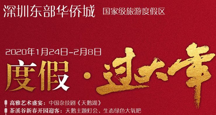 活动介绍: 国际性艺术钜献 杂技与优雅芭蕾的空前结合,中国杂技剧《天鹅湖》新春献礼,茶溪谷新春开园迎客 生态绿色大 氧吧沁人心脾,大侠谷全互动新体验来袭。携爱欢乐过大年,浪漫情调点缀新春,酒店群饕餮美食恭祝佳节,更 有院士级导师带来健康生活大讲堂。 日夜度假精彩不停,越夜越浪漫!漫步于茵特拉根湖畔边,感受山海间独有一番风味的幽静之夜。当夜晚的清爽凉风吹拂过脸庞,湖面绚丽多彩的天鹅灯饰映入眼帘,伴随着小提琴、萨克斯、长笛等悠扬的演奏声,凭栏换盏,只管舒心陶醉于美轮美奂的欧式“古堡”童话世界。 【深圳欢乐海岸】 春节活动时间:即日起至2月23日 地点:深圳欢乐海岸 票价:欢乐灯会春节票价75元,灯会平时票价45元,水秀剧场票价60元,海洋奇梦馆门票60元起 门票购买方式:见文末提示 注意:欢乐灯会除夕休业一天,水秀剧场除夕当天不营业