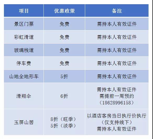 (一)优惠时间 (一)优惠时间 凭有效身份证件(医师证、护士证或与医务工作相关的其他资格证件)免门票入园。 (四)入园形式 自景区恢复开放之日起一年内。 (三)优惠政策 全国医务工作者(含港澳台)。 (一)优惠时间 (三)优惠政策 曾家园免门票(10元/人)。 洪雅县景区优惠政策 (一)优惠时间 免门票(20元/人)。 三、玉屏山景区优惠政策 (三)优惠政策 免门票(100元/人)、免观光车票(68元/人), 该指南要求开放范围瓦屋山AAAA级景区、柳江古镇AAAA级景区等县内7个景区景点面向四川省内、国内疫情防控低风险地区开放。先开放以自然山水景观类为主体的景区,再开放以人文景观类为主体的景区,最后开放以博物馆(含景区内的故居、阁、楼)、展馆等以室内参观为主的景区。 全国医务工作者(含港澳台)。 并且各景区严格落实安全生产责任制和“测、戴、散、洗、消”五项卫生防疫措施要求。 二、柳江古镇景区优惠政策 凭有效身份证件(医师证、护士证或与医务工作相关的其他资格证件)园区消费一律9折。 (二)优惠人群 自景区恢复开放之日起一年内。 |