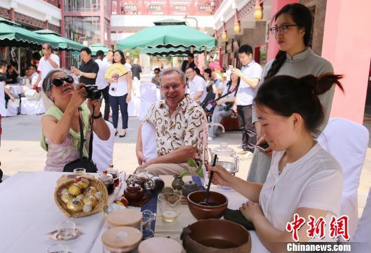 6月26日,“北京沙龙·亲历北京”活动也在马连道第三区商业街同期举办。本次活动由北京月讯杂志社、北京对外文化交流中心主办。众多驻华使馆官员、国际组织驻京机构官员、外国驻京商会代表等,亲身感受中华茶文化的独特魅力。 该推介会由北京市西城区商务委、旅游委、北京马连道建设指挥部以及黄山市政府在北京一商马连道茶城联合举办。 中新网北京6月26日电 (记者 曾鼐)北京茶叶博物馆26日正式亮相,马连道茶文化旅游路线出炉。当天,诸多外国驻华使馆官员等也走进中国第一街马连道,体验中国茶文化。 主办方负责人表示,“北京沙龙·亲历北京”活动,秉承“以体验为精髓,以文化为主线”的宗旨,希望能丰富在京的外国朋友的生活,让他们了解中国文化。 当天,2016“马连道杯”全国茶艺表演大赛同期举行,为京城百姓奉献了一场全茶文化的视听盛宴。 马连道特色街区位于北京市西城区西南部,总面积1.8平方公里,是中国北方最主要的茶文化特色街区,2010年被中国茶叶流通协会授予“中国茶叶第一街”称号。2013年底,西城区政府组建了北京马连道建设指挥部,正在推进街区发展规划的研究、街区产业业态的调整等。 6月26日,外国人士体验制作中国非遗艺术品。 韩海丹 摄 6月26日,外国人士体验中国茶文化。 韩海丹 摄 |