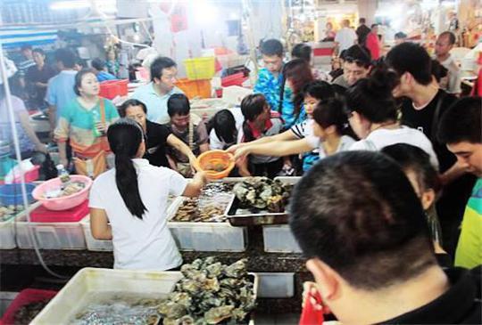 第一市场是由十几家海鲜加工店组成的一条街,在众多的海鲜加工店中挑选一家为你加工,我们选的是网上推荐比较有人气的四川小胡子海鲜加工店,就像其他网友说的那样汪老板很老实,是老板带我们进去里面的海鲜市场选买海鲜和蔬菜的,那里的海鲜有明码标价,但是汪老板还可以帮我们还价,虽然一斤只省二三元钱,但是我们从心底里感激他,看得出他是真诚的对待我们,不过算下来也差不多省了加工费。我们在他那里吃了4天,每次都老板带我们去买海鲜,因为他选的海鲜很好,鱼肉很鲜嫩,蟹黄很多,野菜也很嫩``````````
