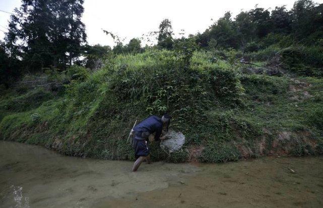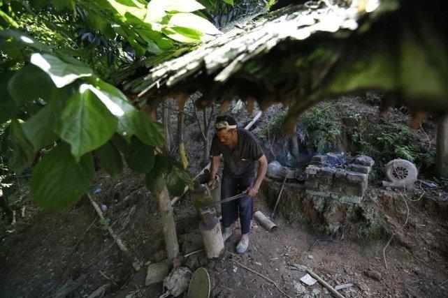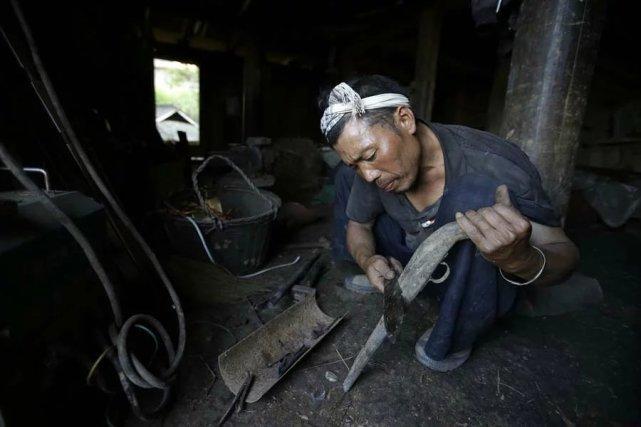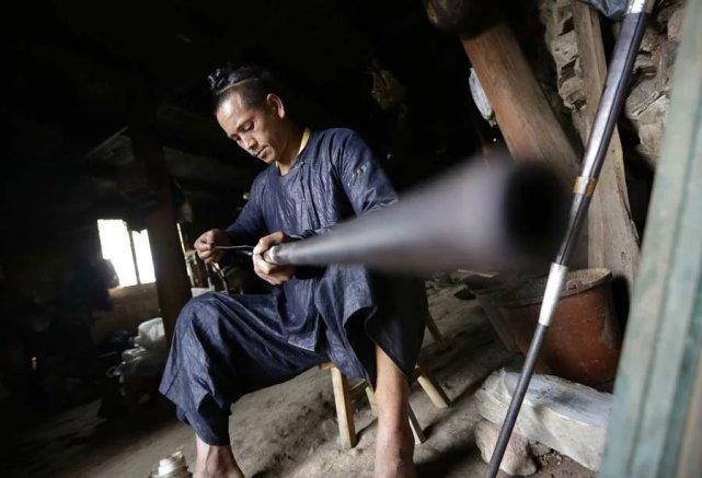 岜沙人非常古老,传说是蚩尤的后裔,他们一直保留着狩猎的习俗,也是中国唯一拥有枪支的部落。 村民们正在制作猎枪的扳机部分。