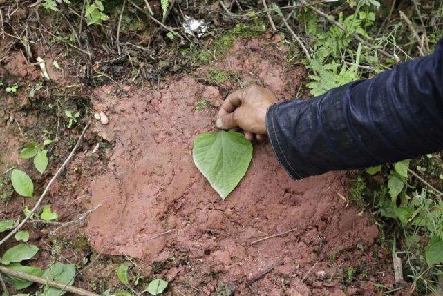 这位岜沙人正在制作一个简单的靶子,用来训练射击。