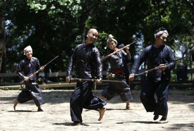 岜沙人带着枪表演跳舞,成为游客最喜欢看的猎奇表演。