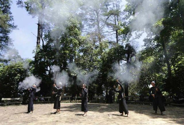 向天鸣枪是岜沙人欢迎客人的尊贵礼仪,如今岜沙人的枪只具有象征意义。