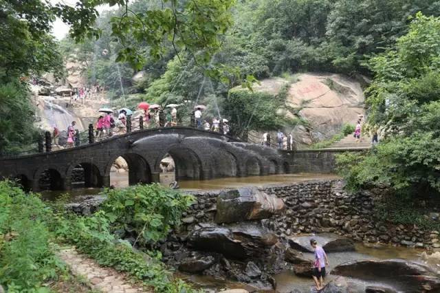 海上云台山景区 海上云台山以山称奇,以海叫绝,因水谓妙,群山透迄、峰峦叠翠、绿水常流。是中国最大的楸树林,陶渊明《桃花源记》的世外桃源说的就是此地。
