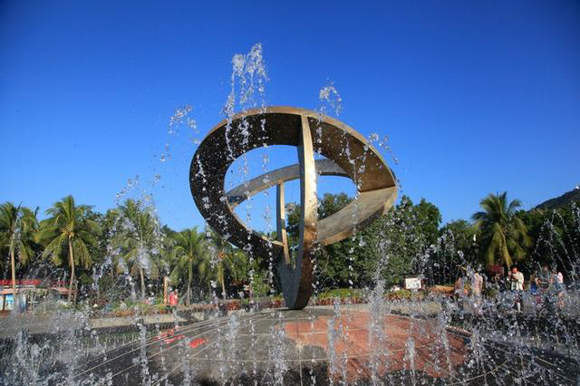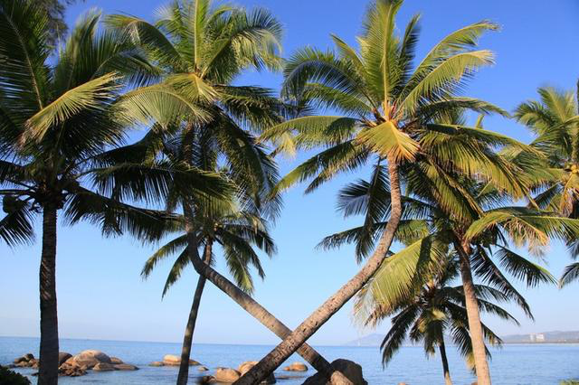 椰梦长廊边, 天涯海角离三亚市区约20公里,在古代可不是现在的旅游胜地,宋胡铨"区区万里天涯路,野草若烟正断魂",是自古以来的蛮荒流放之地,基本上属于仅次于直接要命的流放重刑了。 “希望你能爱我到地老到天荒,希望你能陪我到海角到天涯...”万一你穿越到了古代,千万别在泡妞把妹时乱唱,你会直接挨个五指山,还得落一句“谁陪你去流放啊?傻瓜!”,这家伙整个一乌鸦嘴,得,直接玩完。所以你要说的是:“待得金榜提名,吾将如何如何”,千万别乱扯什么流放之地天涯海角,还得描绘你将来科举的美好前程,方能得到美女芳心啊。对于现代人,尤其是官符如火的人来说,这里又是天之涯海之角,意味着已到尽头,因此做官之人一般避讳来此,当然,如果你带着恋人家人什么的就无所谓了。