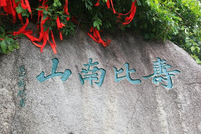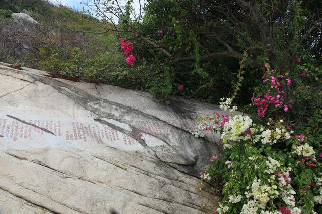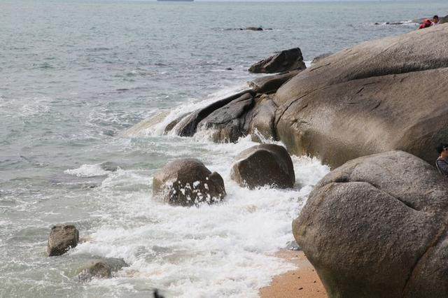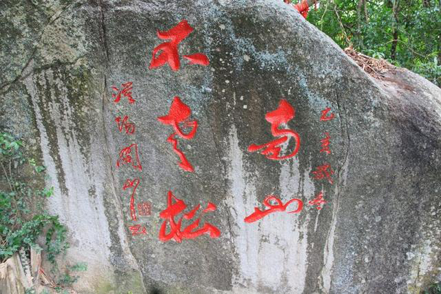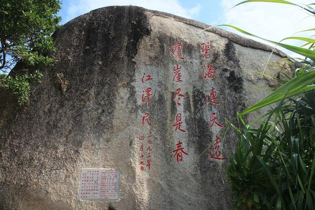 这个字认识吗?没文化看了半天没琢磨明白,细看说明才知道此字传为陈抟所书,这个陈抟可是大大有名,字图南,自号扶摇子,史称"陈抟老祖",也是位列仙班之人,怪不得看不懂呢,神仙放屁-不同凡响啊!细看原来是个"寿"字,由"人"、"寿"、"年"、"丰"四字构成。 出了天涯海角,继续向西,直奔南山大小洞天,古称鳌山大小洞天,是崖州古城之南面屏障,始创于南宋(公元1187年),是海南历史最悠久的风景名胜,自古因其海景、山景、石景与洞景被誉为“琼崖八百年第一山水名胜”。崖州湾弧弦百里,碧波万倾;鳌山云深林翠,岩奇洞幽;海岸神工鬼斧,古朴雄壮。 古代这里比天涯海角有名多了,唐鉴真为弘扬佛法六次东渡日本,第五次漂流至大小洞天海岸登岸;宋道教南宗五祖白玉蟾曾在此修炼和布道;老佛爷御笔“寿”字;陈抟老祖的异体“寿”字;1993年江总题词:“碧海连天远,琼崖尽是春”;1994年赵朴初题词“福如东海,寿比南山”。这其实就是选择来南山大小洞天的绝对理由,南山与长寿密切相关,是中国传统真正意义上的寿山,正所谓是洞天福地。 感谢能有耐心看完我的絮叨,每个看到我游记的都请收下我的祝福:福如洞天水,寿比不老松!